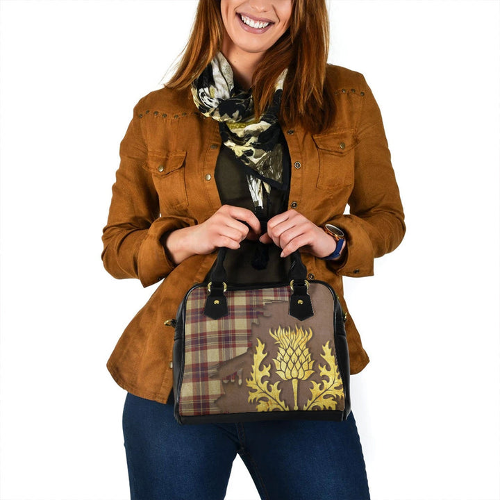 Fraser Arisaid Wine Blue Weathered Tartan Shoulder Handbag Thistle Oldest Style