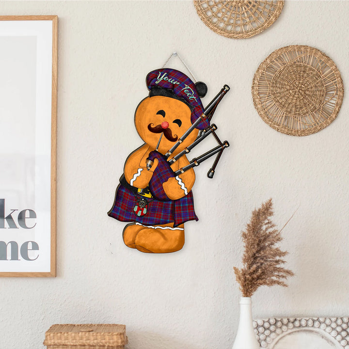 Fraser of Reelig Modern Crest Tartan Wooden Sign Gingerbread Bagpipe Personalized