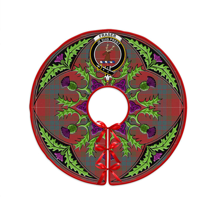 Fraser Weathered Clan Badge Tartan Christmas Tree Skirt Scottish Thistle Design