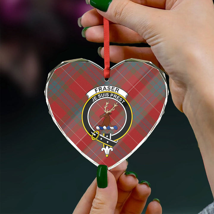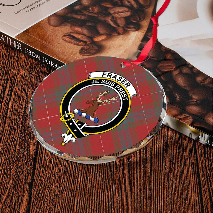 Fraser Weathered Clan Badge Tartan Glass Ornament