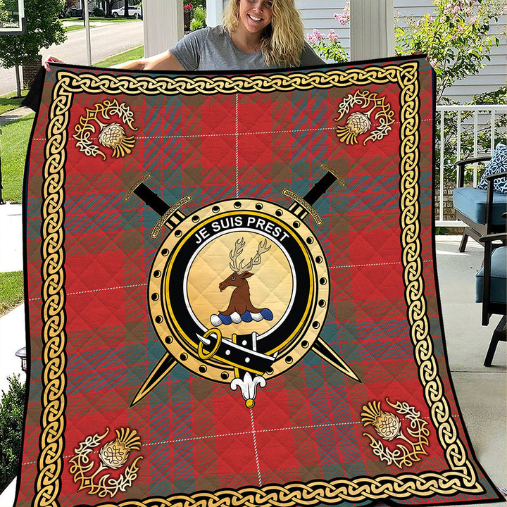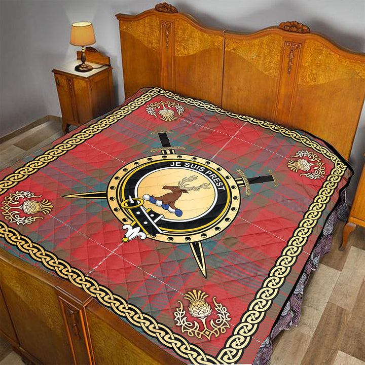 Fraser Weathered Clan Badge Tartan Premium Quilt Celtic Shield