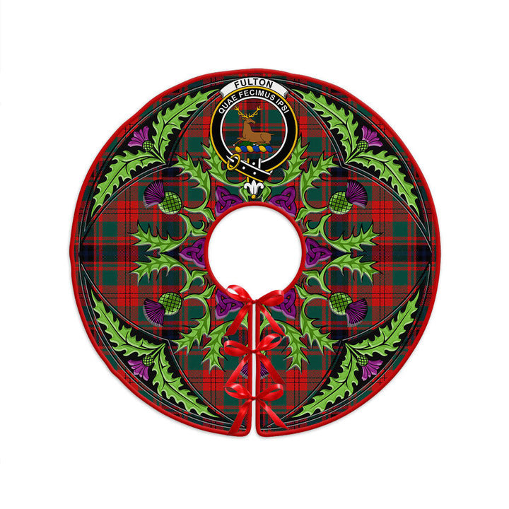 Fulton 1999 Modern Clan Badge Tartan Christmas Tree Skirt Scottish Thistle Design