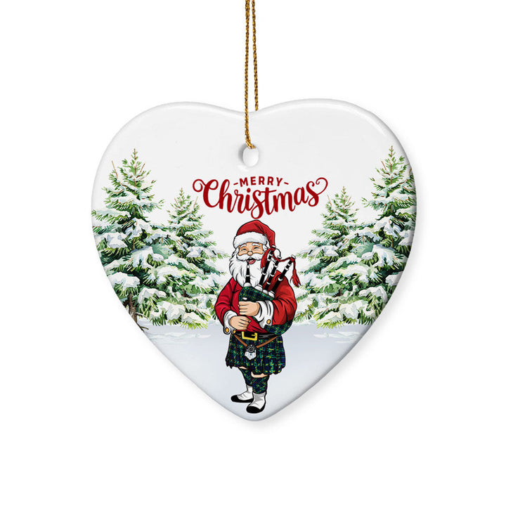 Add a touch of heritage to your celebrations with the Gordon Modern Tartan Ceramic Ornament Santa. Featuring a festive Scottish Santa Claus Bagpipe design, this ornament is the perfect keepsake for decorating your home or gifting to loved ones.