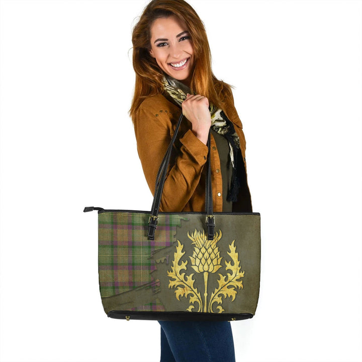 Grewar (MacGruar) Ancient Tartan Leather Tote Bag Thistle Oldest Style