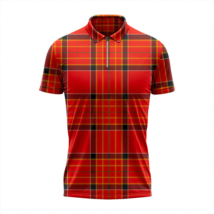 Hackston Green Stripe Ancient Tartan Classic Lapel Zip Short Sleeve Polo