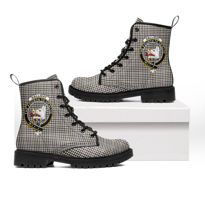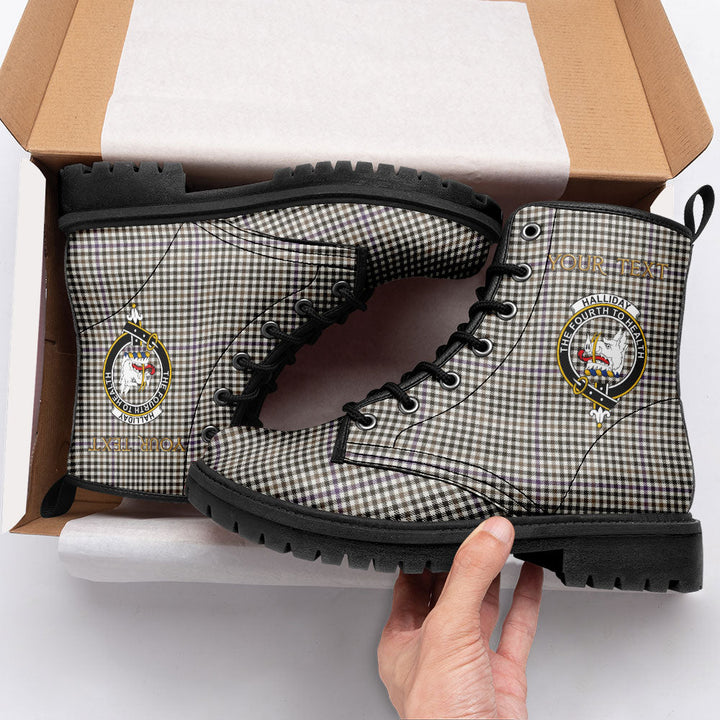 Halliday (Holliday) Weathered Clan Badge Tartan Leather Boots