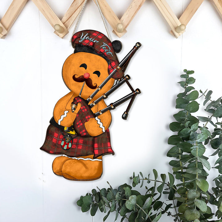 Hay Weathered Crest Tartan Wooden Sign Gingerbread Bagpipe Personalized