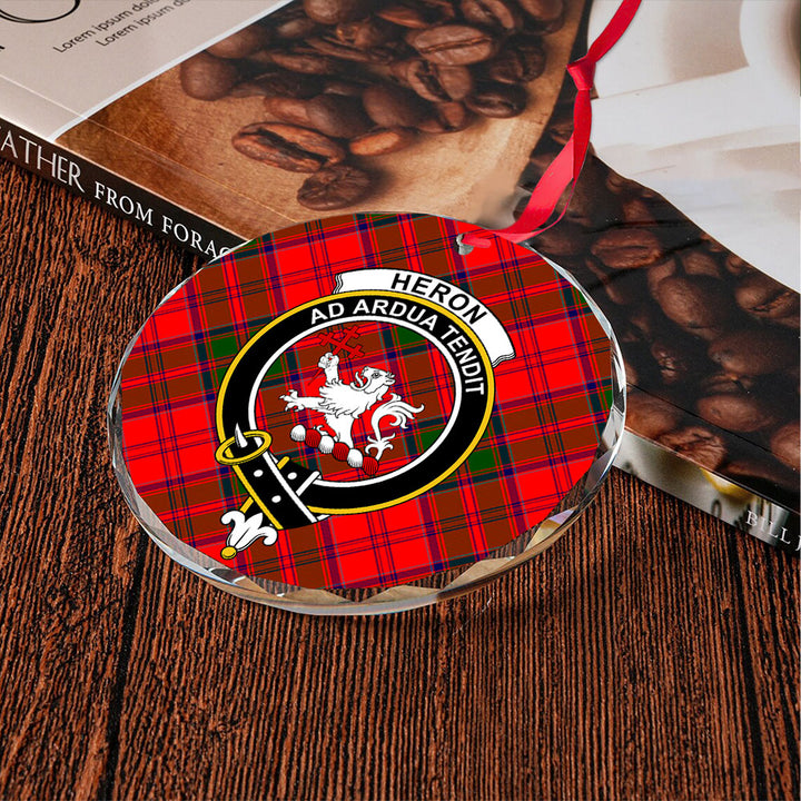 Heron Clan Badge Tartan Glass Ornament