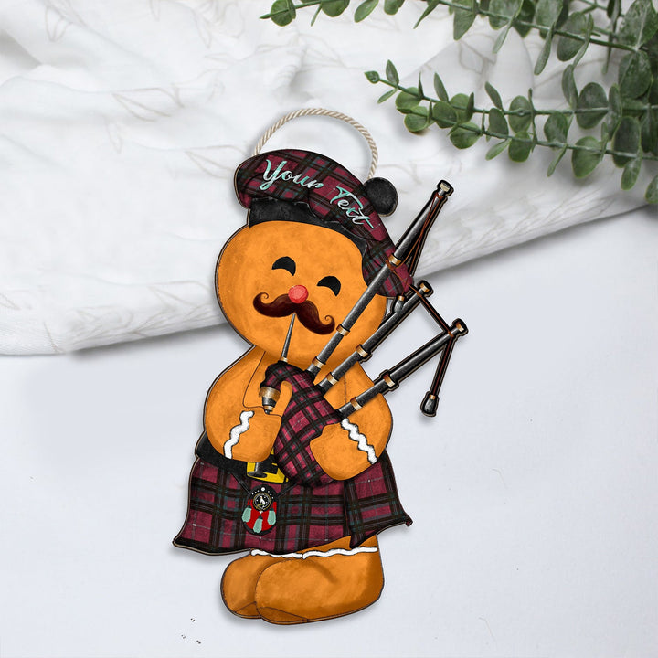 Hunter of Bute (Michael Maroon) Weathered Crest Tartan Wooden Sign Gingerbread Bagpipe Personalized