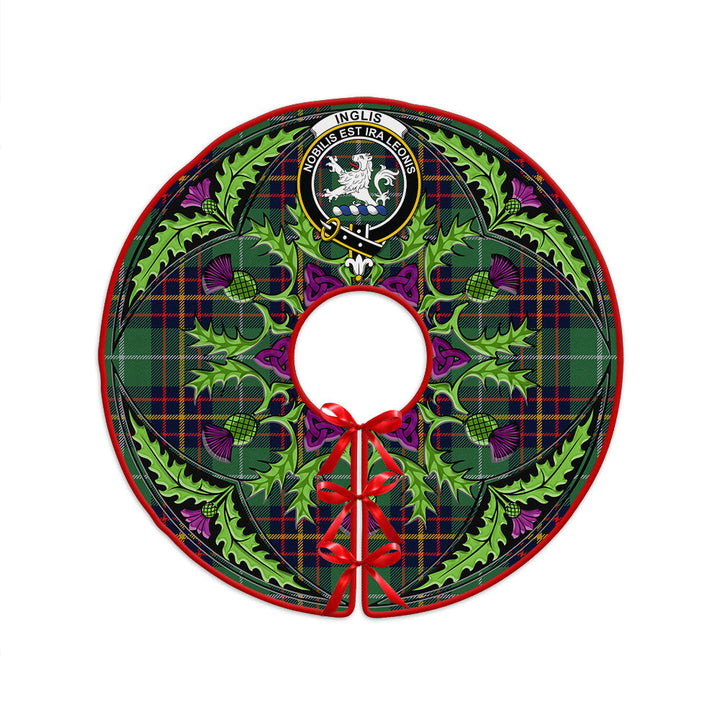 Inglis Modern Clan Badge Tartan Christmas Tree Skirt Scottish Thistle Design
