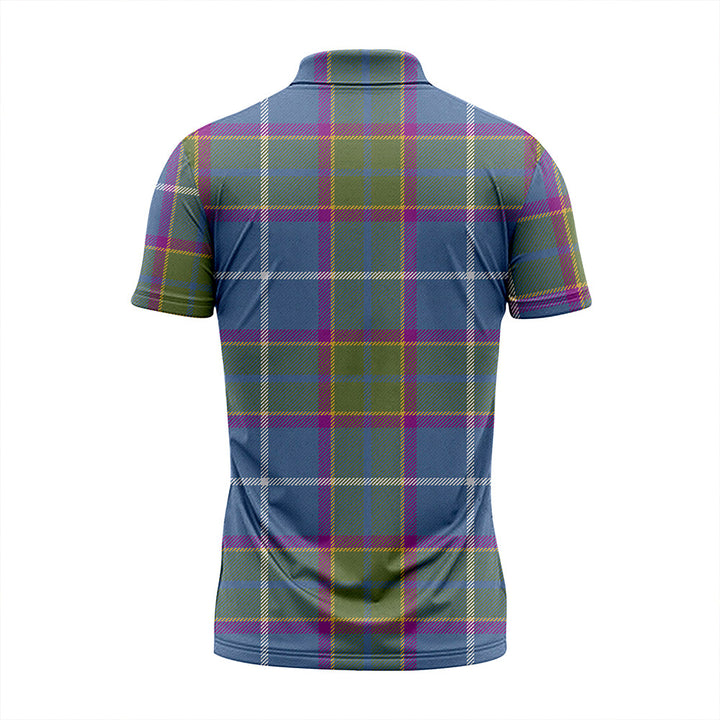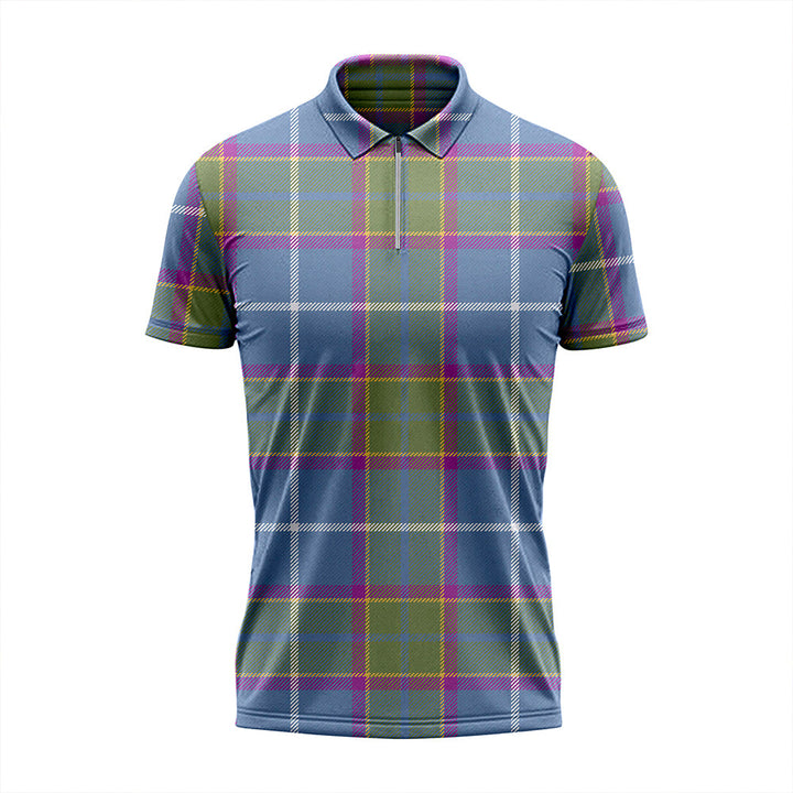 Isle of Man Manx Laxey Blue Weathered Tartan Classic Lapel Zip Short Sleeve Polo