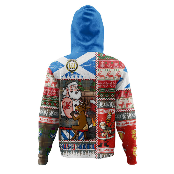 Johnstone (Johnson) Weathered Clan Badge Tartan Hoodie Scottish Santa Tattoo Christmas Comic Patchwork Style