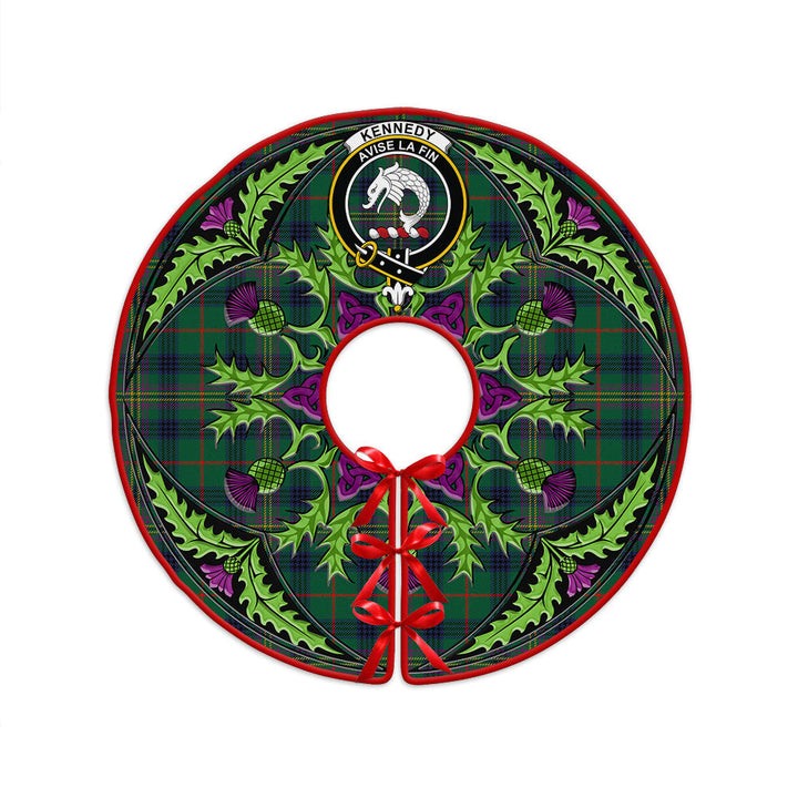 Kennedy Modern Clan Badge Tartan Christmas Tree Skirt Scottish Thistle Design