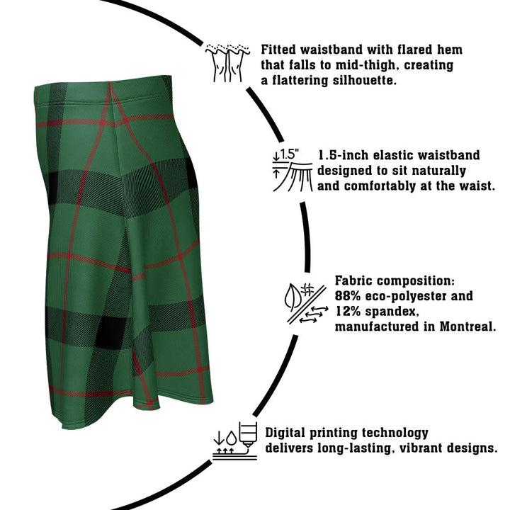 Step out in heritage style with the Kincaid Ancient Clan Badge Tartan Flared Skirt. Featuring vivid tartan prints, a flattering high waist, and eco-friendly performance fabric, this skirt blends comfort and Scottish pride in every detail.