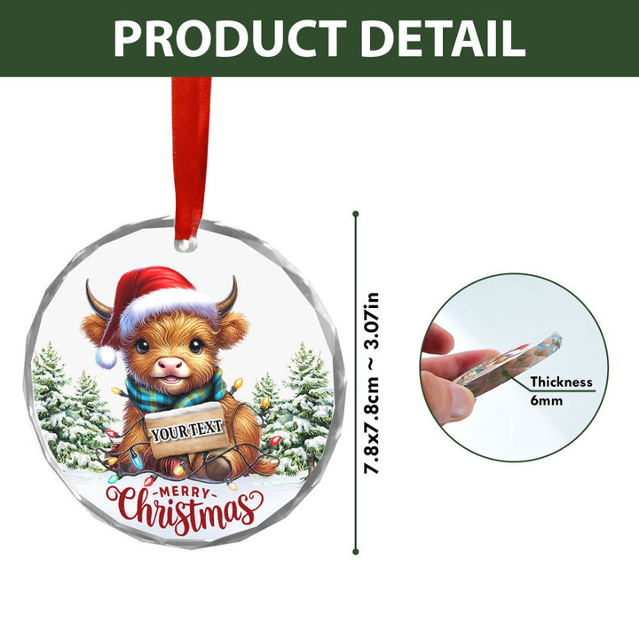 Laing (Lang) Modern Clan Badge Tartan Glass Ornament Highland Cow Christmas Lights