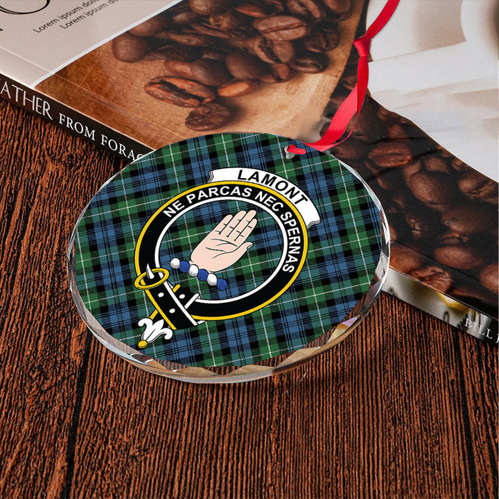 Lamont Ancient Clan Badge Tartan Glass Ornament