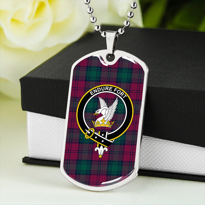 Lindsay #2 Modern Clan Badge Classic Tartan Dog Tag Necklace