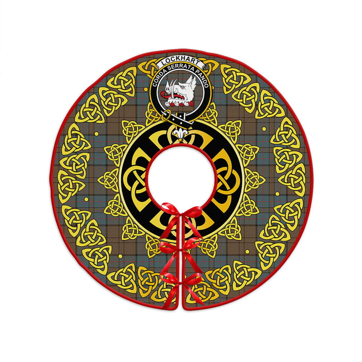 Lockhart Weathered Clan Badge Tartan Christmas Tree Skirt Golden Celtic Heritage