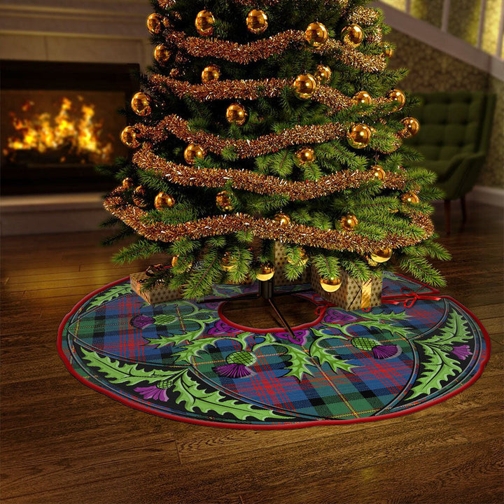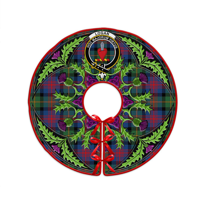 Logan Modern Clan Badge Tartan Christmas Tree Skirt Scottish Thistle Design