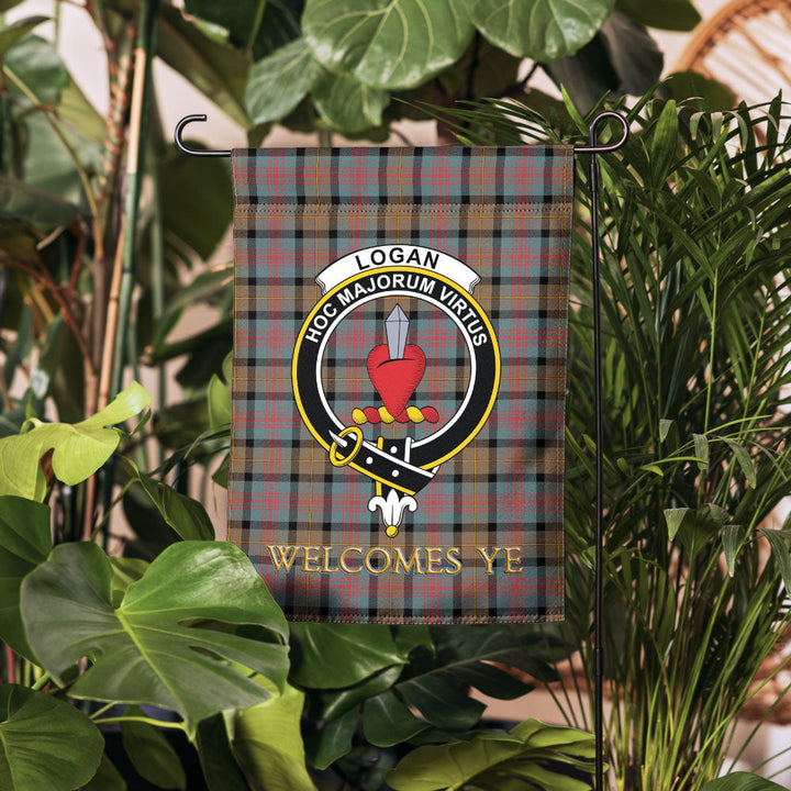 Logan Weathered Clan Badge Tartan Garden Flag