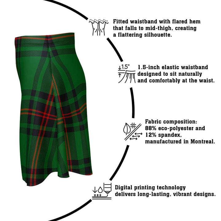 Step out in heritage style with the Logie Clan Badge Tartan Flared Skirt. Featuring vivid tartan prints, a flattering high waist, and eco-friendly performance fabric, this skirt blends comfort and Scottish pride in every detail.