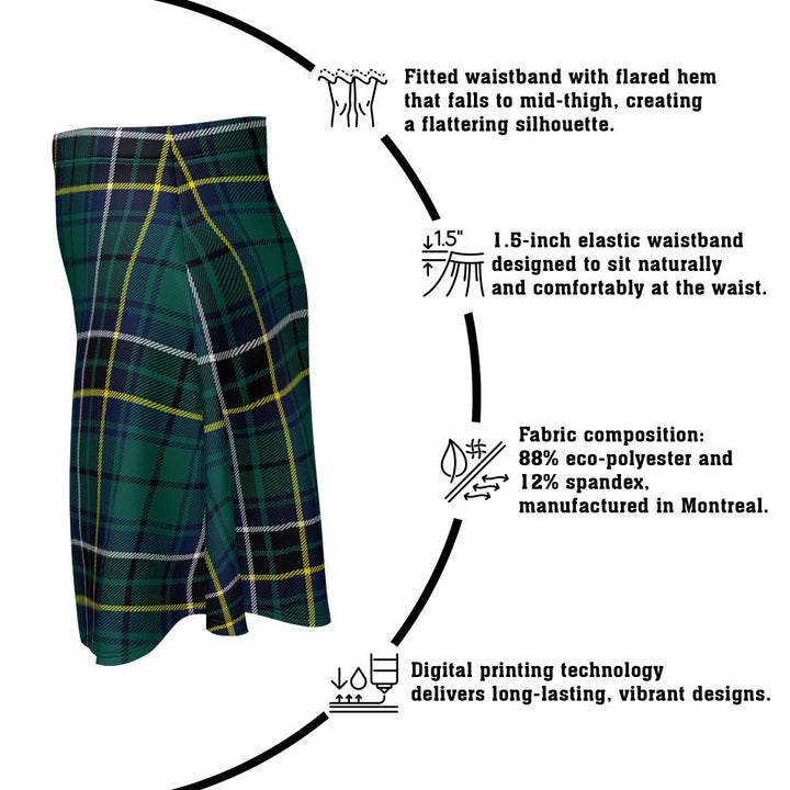 Step out in heritage style with the MacAlpine Modern Clan Badge Tartan Flared Skirt. Featuring vivid tartan prints, a flattering high waist, and eco-friendly performance fabric, this skirt blends comfort and Scottish pride in every detail.