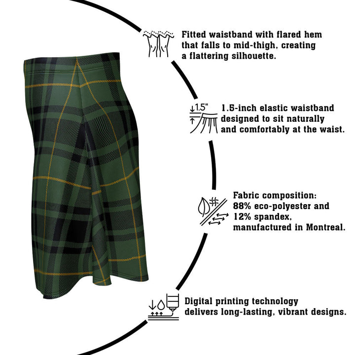 Step out in heritage style with the MacArthur Modern Clan Badge Tartan Flared Skirt. Featuring vivid tartan prints, a flattering high waist, and eco-friendly performance fabric, this skirt blends comfort and Scottish pride in every detail.