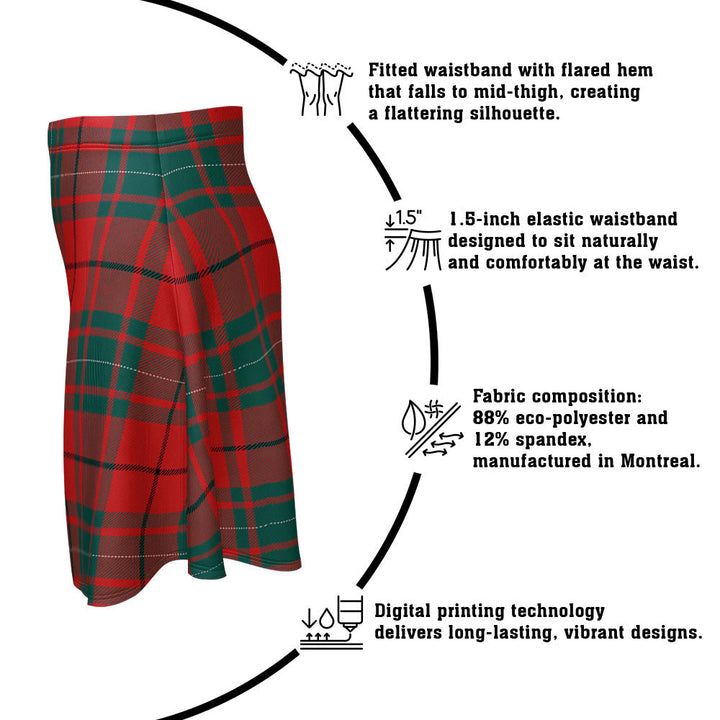 Step out in heritage style with the MacAulay Modern Clan Badge Tartan Flared Skirt. Featuring vivid tartan prints, a flattering high waist, and eco-friendly performance fabric, this skirt blends comfort and Scottish pride in every detail.