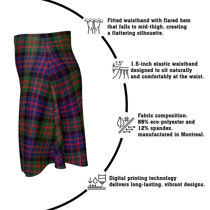 Step out in heritage style with the MacBrayne Clan Badge Tartan Flared Skirt. Featuring vivid tartan prints, a flattering high waist, and eco-friendly performance fabric, this skirt blends comfort and Scottish pride in every detail.