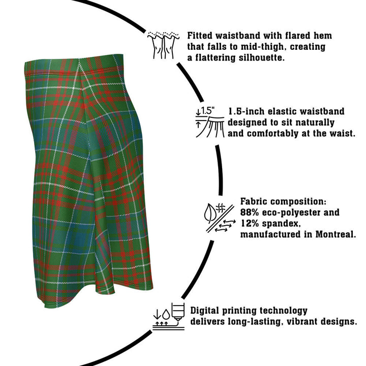 Step out in heritage style with the MacConnell Ancient Clan Badge Tartan Flared Skirt. Featuring vivid tartan prints, a flattering high waist, and eco-friendly performance fabric, this skirt blends comfort and Scottish pride in every detail.