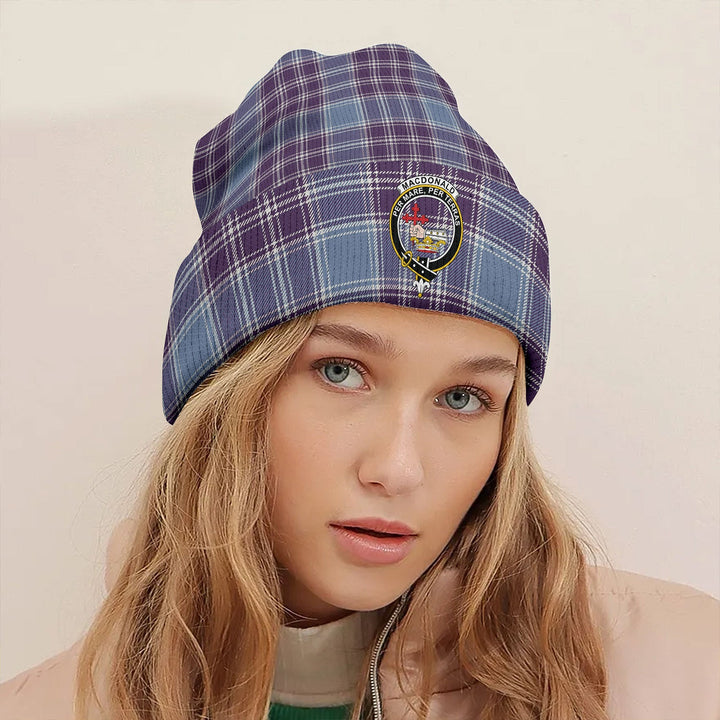 MacDonald Lord of the Isles Hunting Blue (Donald Lord of the Isles Hunting Blue) Weathered Clan Badge Tartan Knitted Beanie