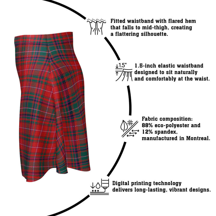 Step out in heritage style with the MacDougall Modern Clan Badge Tartan Flared Skirt. Featuring vivid tartan prints, a flattering high waist, and eco-friendly performance fabric, this skirt blends comfort and Scottish pride in every detail.