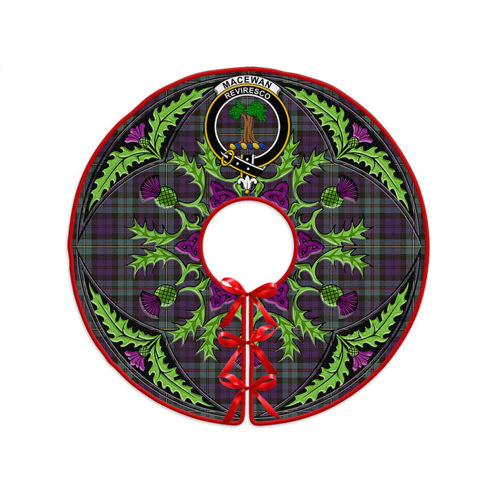 MacEwan Weathered Clan Badge Tartan Christmas Tree Skirt Scottish Thistle Design