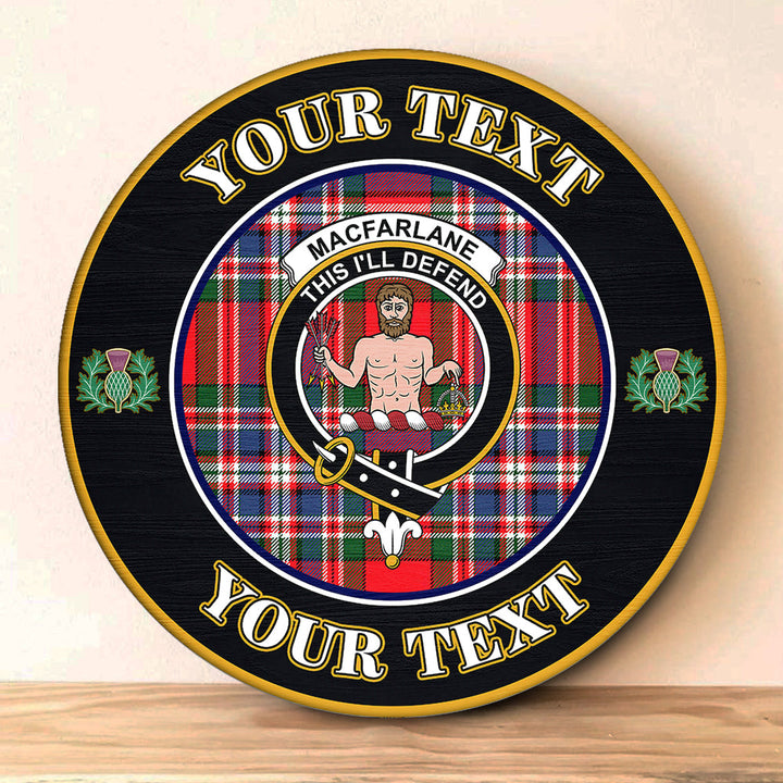 MacFarlane Modern Tartan Crest Round Wooden Sign Thistle Memory Style