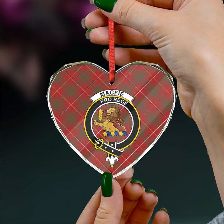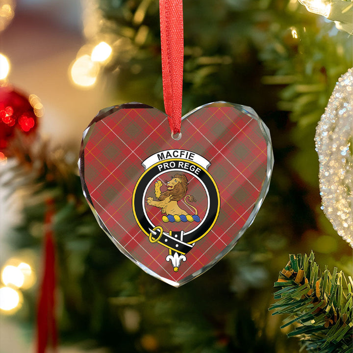 Drive with heritage — order your MacFie (MacPhee) Weathered Clan Badge Tartan Glass Ornament today!