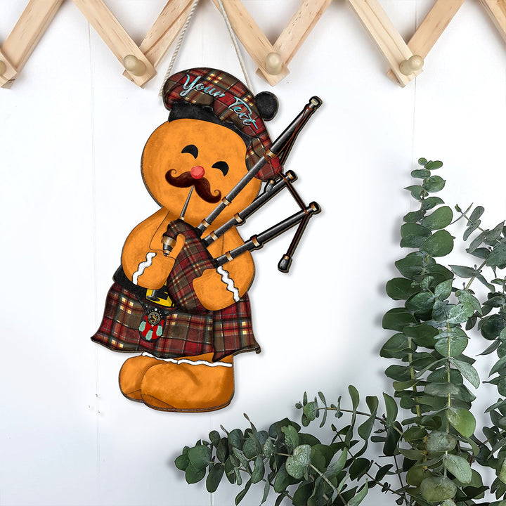 MacGlashan Weathered Crest Tartan Wooden Sign Gingerbread Bagpipe Personalized