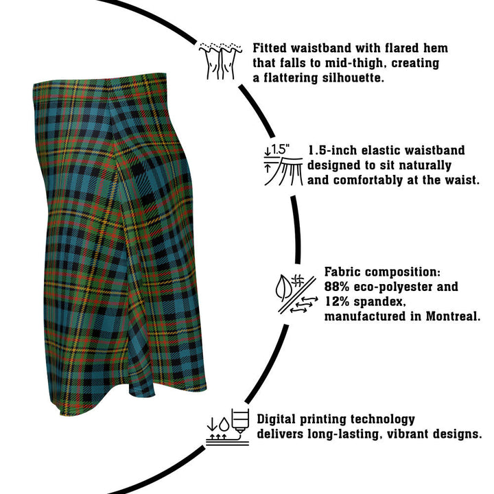 Step out in heritage style with the MacLellan Ancient Clan Badge Tartan Flared Skirt. Featuring vivid tartan prints, a flattering high waist, and eco-friendly performance fabric, this skirt blends comfort and Scottish pride in every detail.