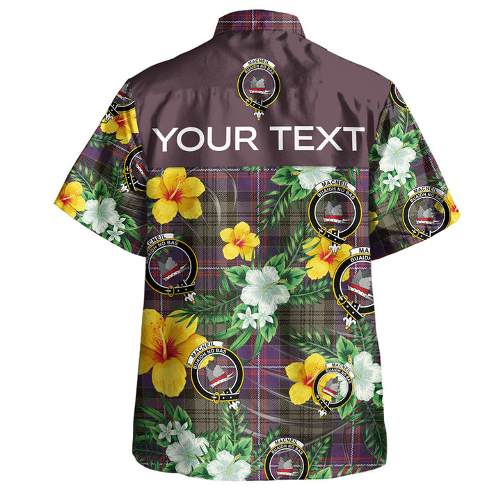 MacNeil of Colonsay (MacNeil of Barra of Colonsay) (Highland Society of London) Weathered Clan Badge Tartan Hawaiian Shirt Summer Vibes Style