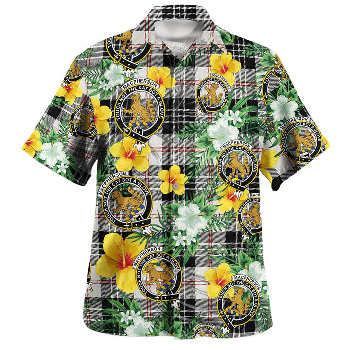 MacPherson of Cluny Black & White Clan Badge Tartan Hawaiian Shirt Summer Vibes Style