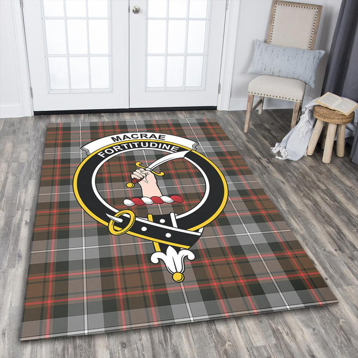 MacRae Hunting Weathered Tartan Crest Area Rug