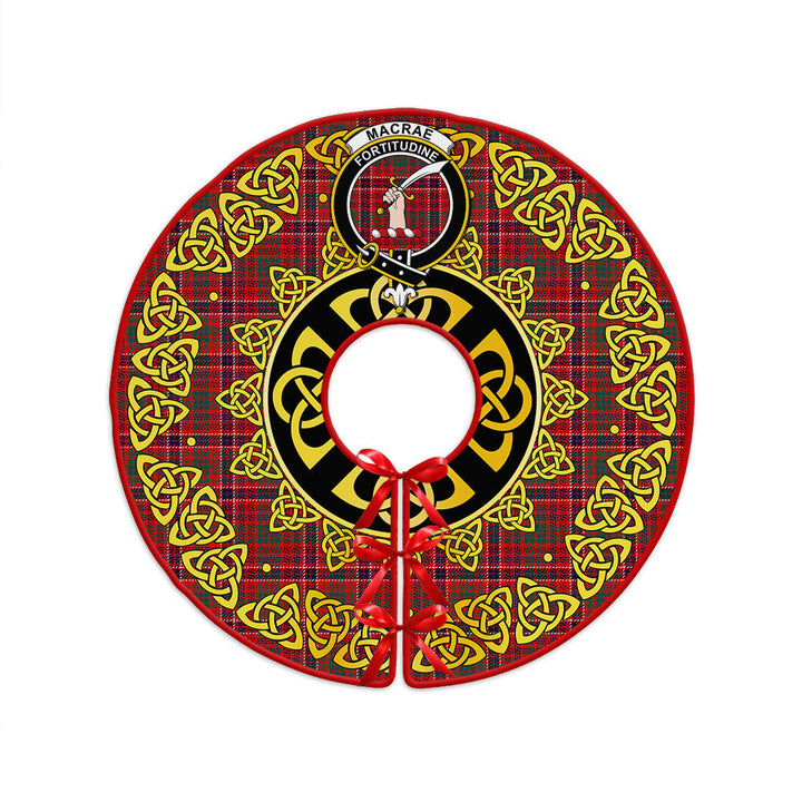 MacRae Modern Clan Badge Tartan Christmas Tree Skirt Golden Celtic Heritage