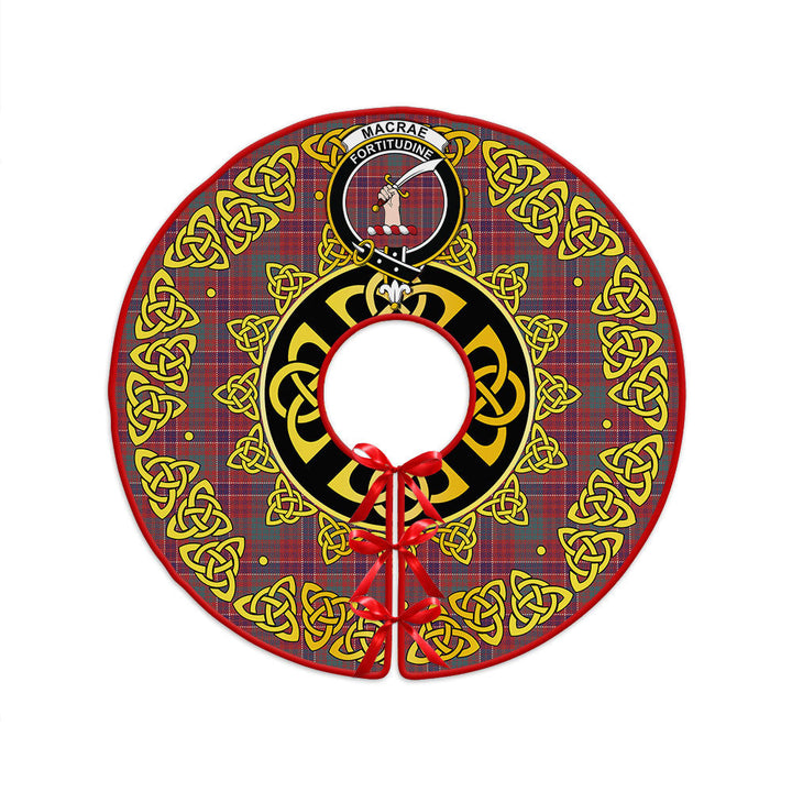 MacRae Weathered Clan Badge Tartan Christmas Tree Skirt Golden Celtic Heritage