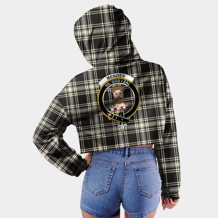 Menzies Black & White Ancient Clan Badge Classic Tartan Croptop Hoodie
