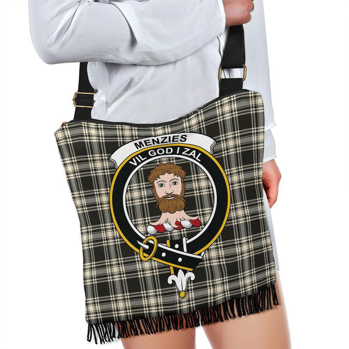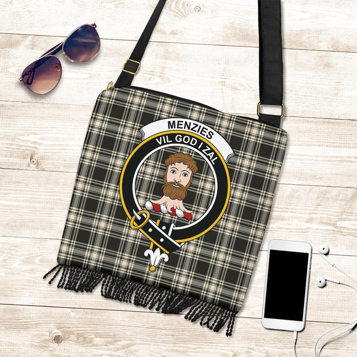 Menzies Black & White Ancient Tartan Classic Crest Boho Handbag