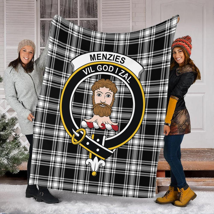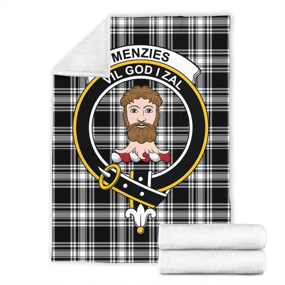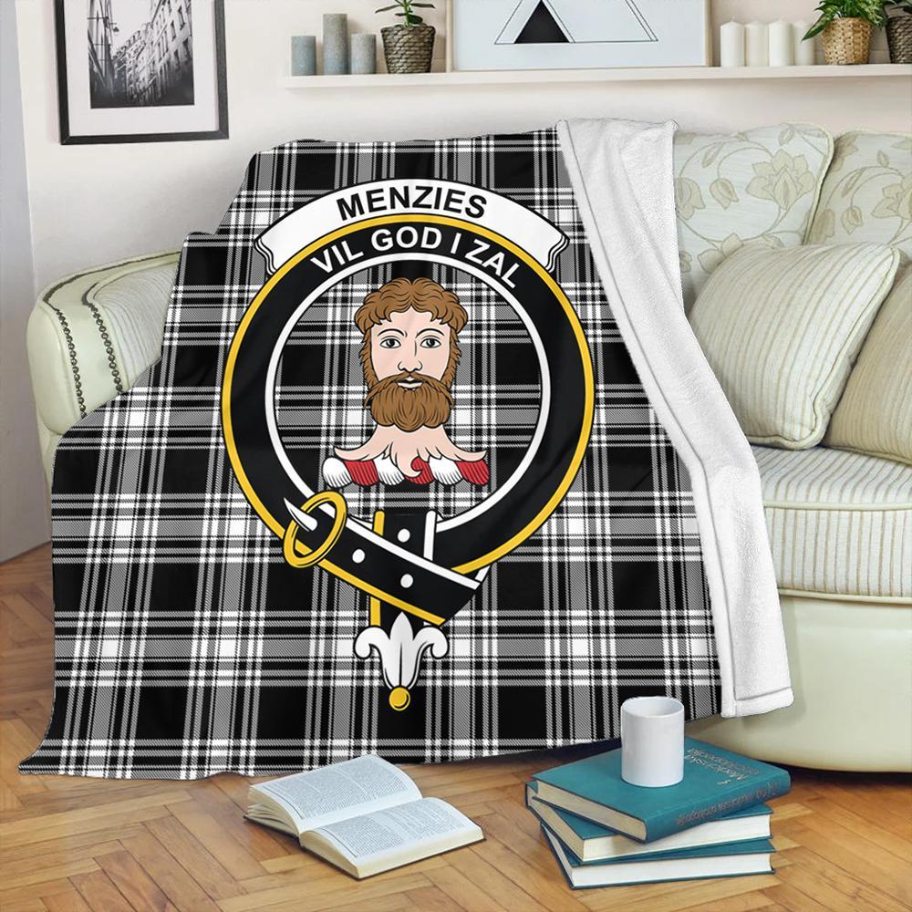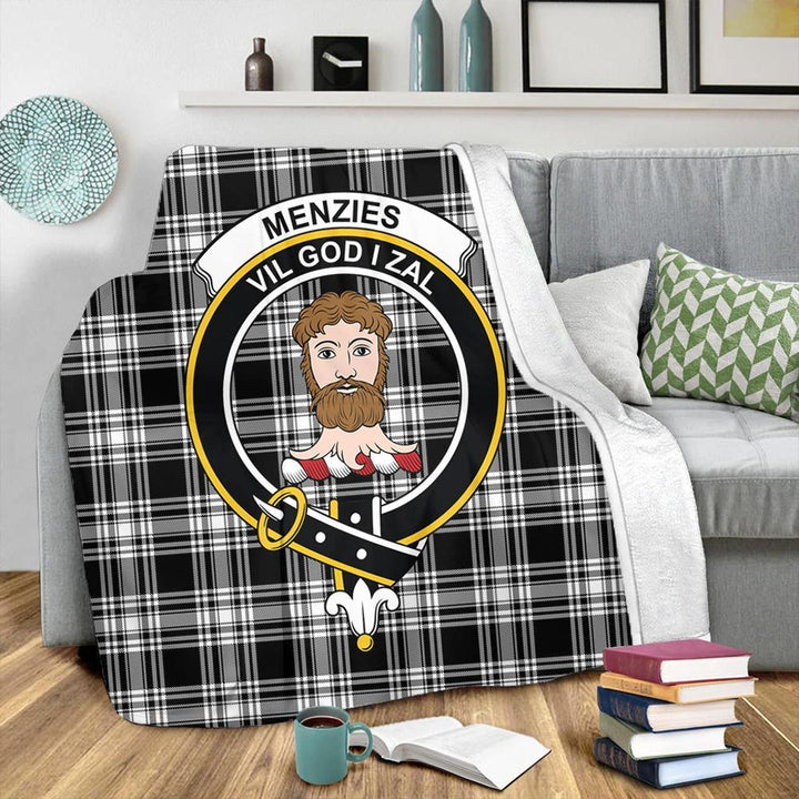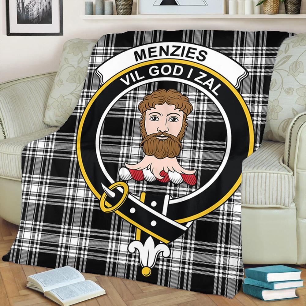 Menzies Black & White Modern Tartan Crest Premium Blanket