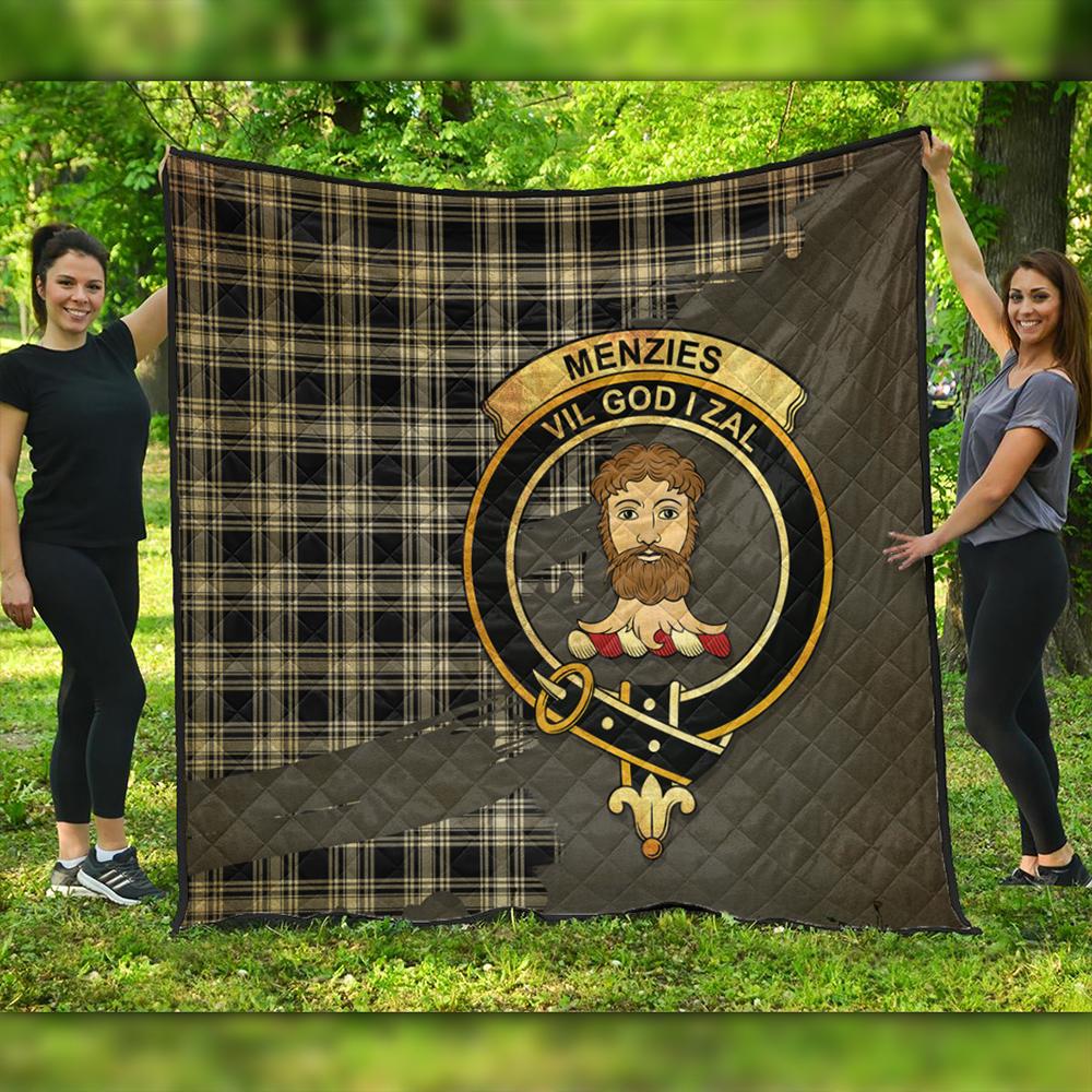 Menzies Black & White Modern Tartan Crest Premium Quilt Oldest Style