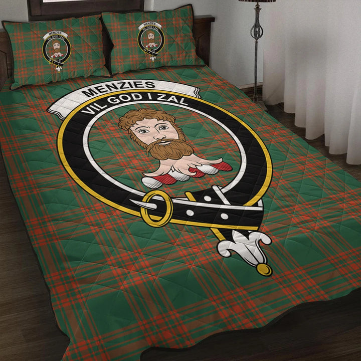 Menzies Green Ancient Tartan Classic Crest Quilt Bed Set