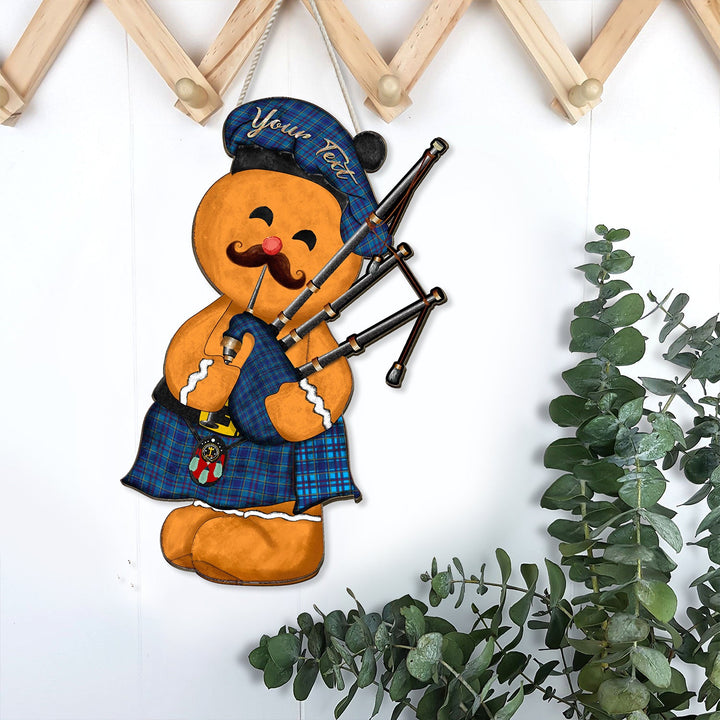 Mercer Modern Crest Tartan Wooden Sign Gingerbread Bagpipe Personalized