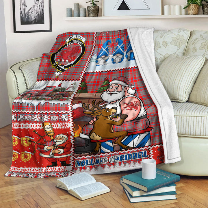 Moubray Clan Badge Tartan Blanket Scotland Santa Tattoo Christmas Comic Patchwork Style