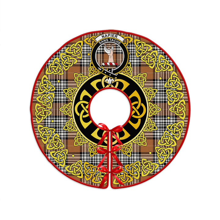 Napier Rose Modern Clan Badge Tartan Christmas Tree Skirt Golden Celtic Heritage
